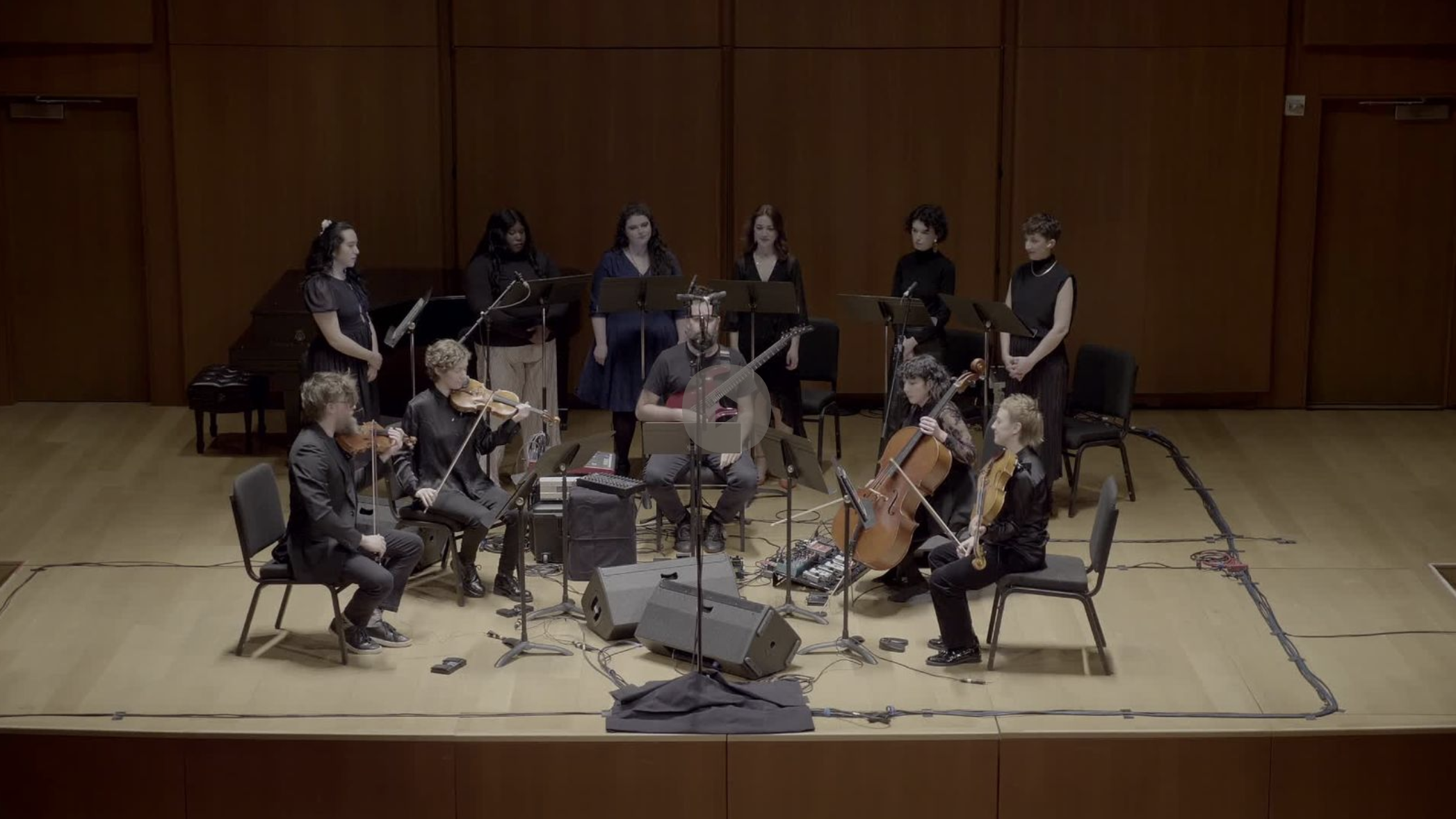 World premieres given by ACME include Clarice Jensen’s evening-length piece The Exaltation of Inanna for string quartet, guitar, and four singers; Ingram Marshall’s Psalmbook; Jóhann Jóhannsson’s Drone Mass (commissioned by ACME in 2015); Caroline Shaw's Ritornello; Phil Kline's Out Cold; William Brittelle's Loving the Chambered Nautilus; Timo Andres’ Senior and Thrive on Routine; Caleb Burhans’ Jahrzeit; and many more. In 2016 at The Kitchen, ACME premiered Clarice Jensen’s transcription of Julius Eastman’s The Holy Presence of Joan d’Arc for ten cellos, the score of which had been lost since the premiere in 1981. Jensen transcribed a recording of the work to recreate the score.