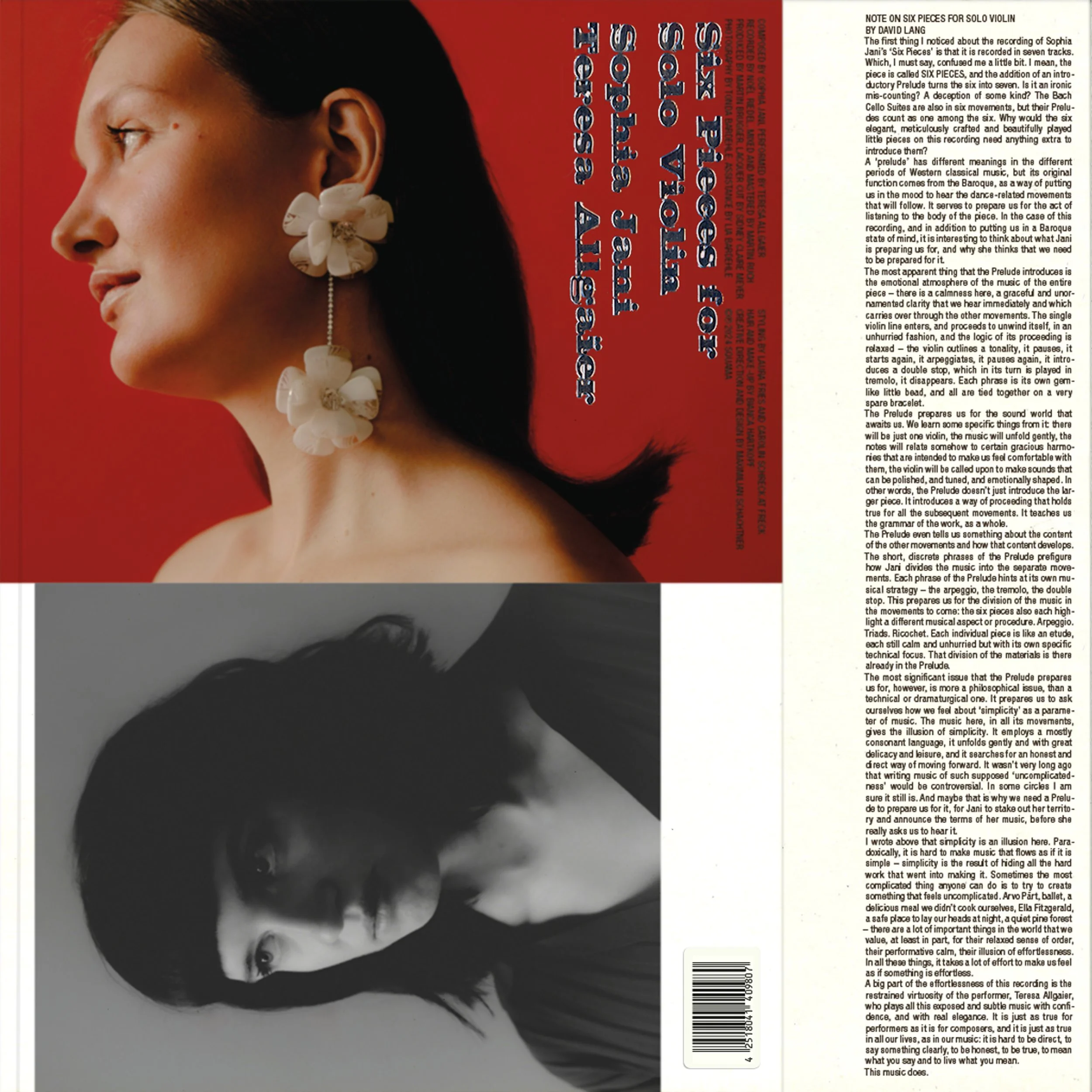 Six Pieces for Solo Violin was composed by Sophia Jani and recorded by violinist Teresa Allgaier Jani composed Six Pieces for Solo Violin between 2020 and 2023, and with it challenges the notion of simplicity as a parameter, weaving a tapestry of gentle consonance that invites contemplation and honors the violin as an instrument.